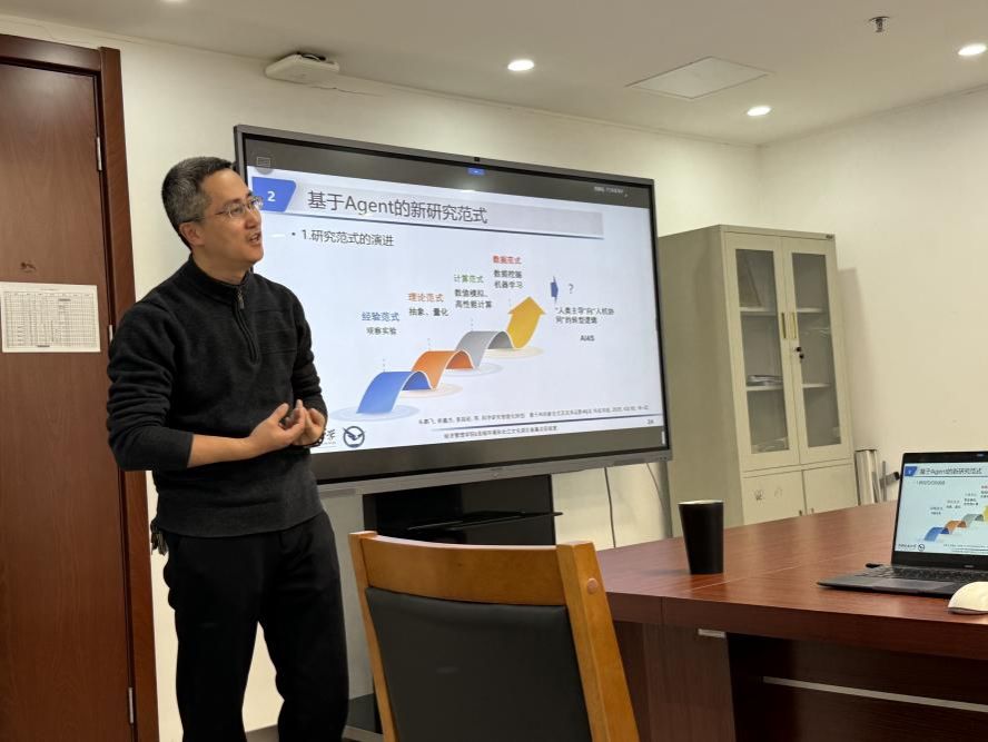 【通讯员:程茹 刘保山】1月15日,管理科学与工程系举办"管科思享汇"第三期学术活动。本次研讨会以"AI赋能社会科学研究的新进展:从LLM到智能体仿真"为主题,特邀朱镇老师担任主讲,15位专业教师及6名学生代表参与交流。